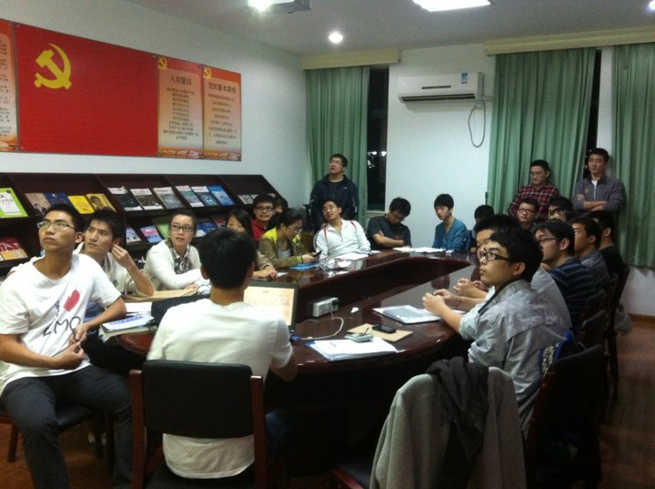 在党的十八大即将召开之际,为了让支部成员对党的发展历史有更清楚、全面的了解,电气0904党支部展开了一次忆党史活动。2012年10月26号晚7点,电气0904党支部18位党员与10位积极分子齐聚电气学院党员之家,在活跃的氛围中重温历次党的代表大会的过程。