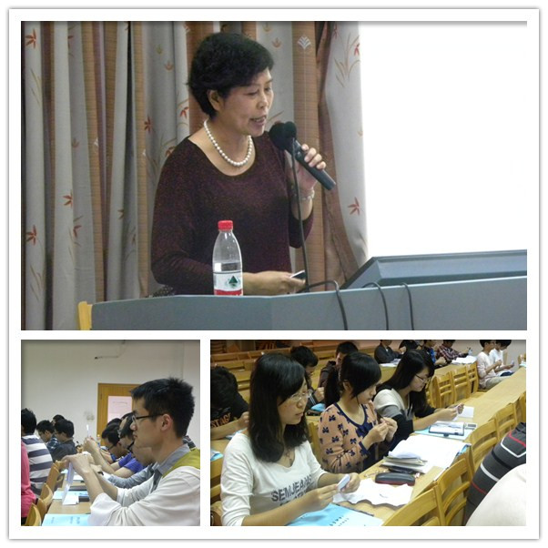 随后,龚老师从实际出发,介绍了几个与沟通有关的实例,让同学们更深刻地体会到在生活中沟通的重要性。之后,她由浅入深,讲述了沟通的概念,沟通对个人发展的意义,沟通的要素及特点。龚惠香教授还根据她多年从事的心理咨询的经验,将高校学生中存在的沟通问题及其特点和应对方法告诉在座同学。