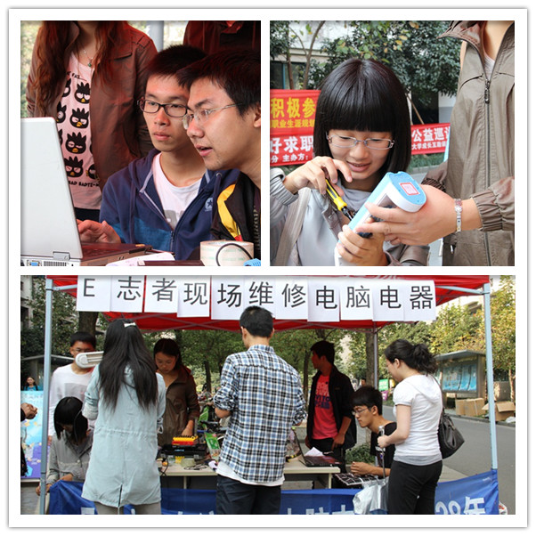 2012年10月20日,2023白菜网总站大全E志者协会 “现场免费维修电器”活动的校内部分在紫云和蓝田两个学园同时举行。这是E志者协会本学期举办的第一次大型现场志愿维修活动。