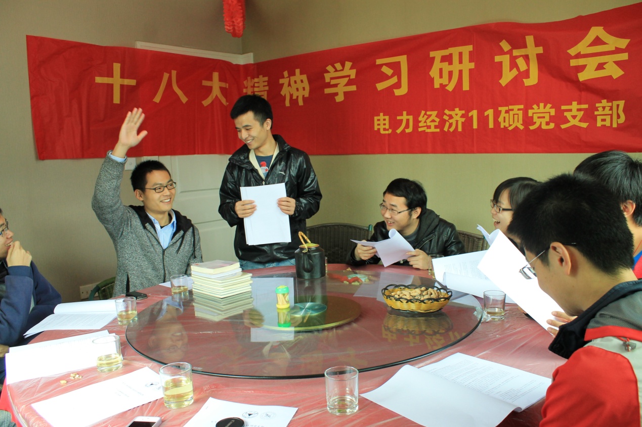 2012年11月24日,为庆祝中国共产党第十八次全国代表大会的顺利召开,电力经济11硕党支部组织了杭州梅家坞考察学习活动。党员们踏上红色之旅,前往位于杭州西湖区梅家坞村的周总理纪念馆考察学习,循迹周总理五次亲临梅家坞关心农村发展这种全心全意为人民服务的精神,并举行了学习十八大精神研讨会,为我支部更好地贯彻落实十八大精神奠定基础。