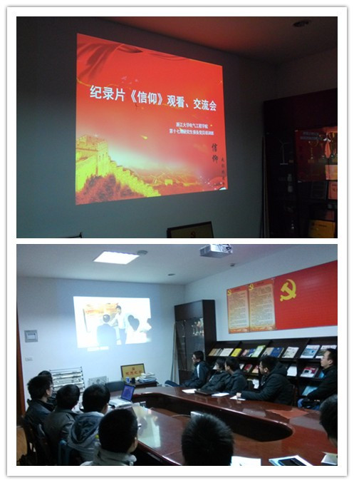 为贯彻学校关于在研究生中开展“学习宣传贯彻十八大精神”主题教育系列活动的精神,加强研究生理想信念教育,全讯600cc大白菜官网第十七期研究生预备党员培训班组织全体学员于2012年12月10日18:00在教二“党员之家”观看历史文献纪录片《信仰——我们的故事》,并做观后感的交流讨论。