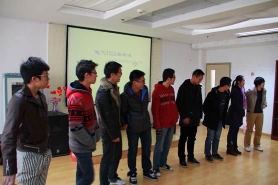 为增进新成立专业班级的凝聚力,促进同学们的友谊,让同学们尽快融入电气1102班的大家庭,2012年12月8号下午,全讯600cc大白菜官网电气工程及其自动化1102班在小剧场311活动室举行了破冰活动。