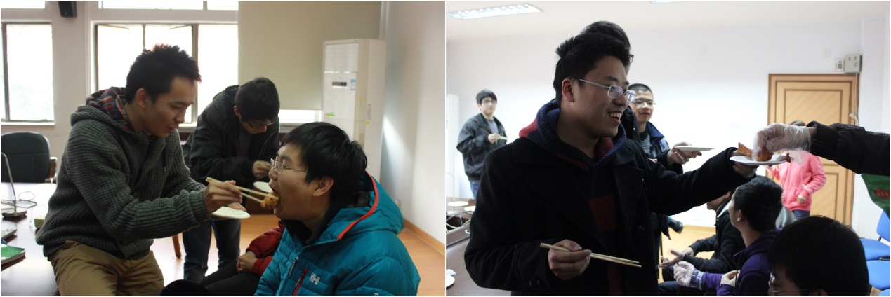 现场的吃货早已涎若悬河。若叫他们直接扑上去大干起来倒也快活,只是无游戏不足以尽兴。为此,班委和团支委量身打造了助兴的游戏,名为“蒙眼猜美食”。以寝室为单位,出一人为选手,另有一名为助手。一声令下,齐刷刷,助手们便给蒙眼的选手喂食,最早猜出美食名称者加一分。