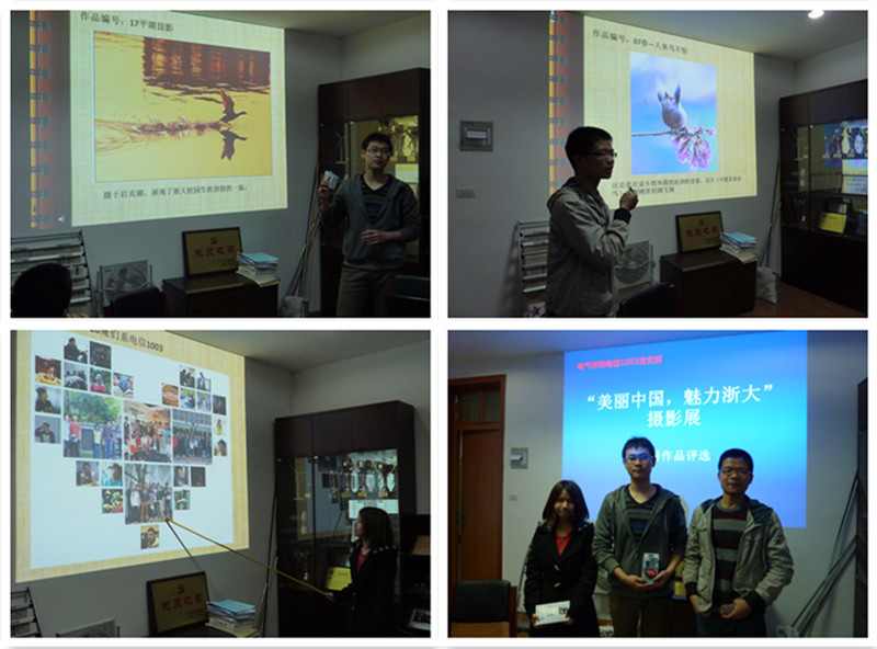 简要的开场白后,活动进入了作品展示环节,54幅作品通过投影仪被一一展示出来。作品的内容从校园美景到家乡风光,从旅游掠影到身边细节,不一而足;其中既有雪中静谧的求是园,也有树梢间透过的斑驳阳光,既有雨中的累累梯田,也有挺拔的参天大树。每一幅作品都代表了作者的独特视角,记录了身边的美丽瞬间。在场的同学认真观看,称赞声不绝于耳。