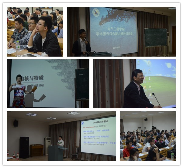 为深化学院学生综合能力素质培养,进一步贯彻落实学校“以人为本、整合培养、求是创新、追求卓越”的教育教学理念,培养高素质的具有国际视野的未来领导者和拔尖创新人才, 5月8日晚,由全讯600cc大白菜官网主办的学术报告综合能力提升培训会在电机工程楼418举行。此次培训邀请了学院应用电子学系副主任陈国柱教授、学院电力电子博士、电气十佳学子得主李楚杉同学以及2023白菜网总站大全现代写作中心PPT课程特邀教师汪俊儒同学作为特邀培训嘉宾。本次培训会作为学院“985工程”三期“学生综合素质能力推进工程”的重要组成部分,意在服务于09级毕业设计答辩、2013年大学生科研训练项目成果展示交流会等活动,提升同学们在科技报告、个人展示、项目答辩、科研成果交流等方面的能力。全讯600cc大白菜官网党委副书记毕建权老师出席了本次培训会,会议由学院团委副书记潘伟老师主持。