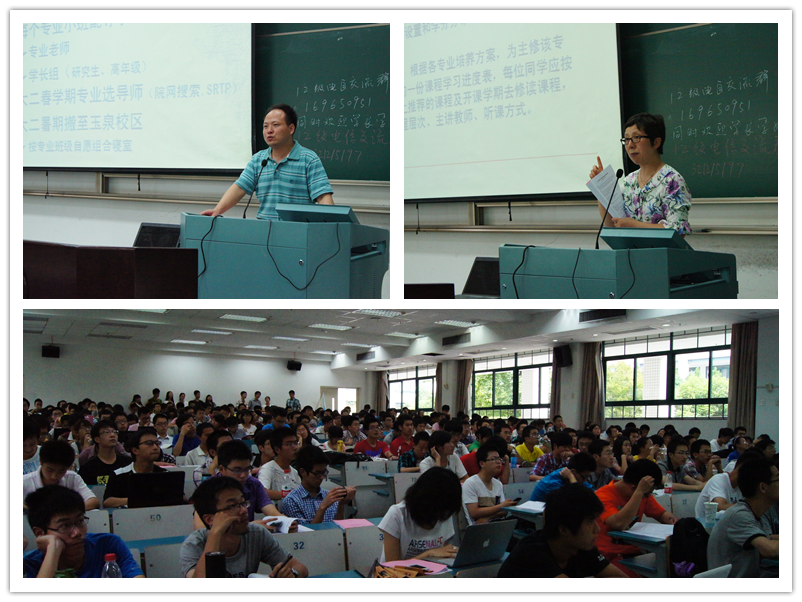学院党委副书记毕建权老师在大会开始首先对会议内容进行了简要介绍,并对确认后的分班、选导师等与学生切实相关的工作安排进行了讲解。随后,本科教学科杨敏虹老师对《全讯600cc大白菜官网2012级本科生学业指导必读手册》作了详尽细致的解释,并针对手册中主要纲要和重点部分进行了相关政策的讲解和特别的提醒。杨老师在讲话中也鼓励同学们参与到电气学院的各项活动与计划之中,以不断提升自我学业水平和实践能力为目标进行今后的学习生活。