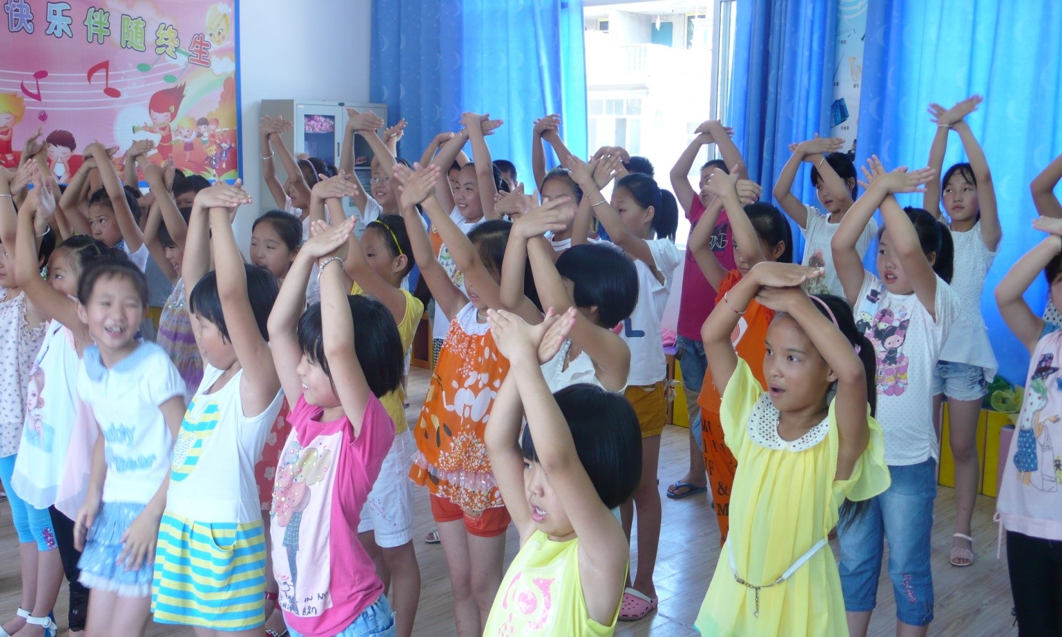 孩子们在学歌曲配备的动作(摄影:王祺)