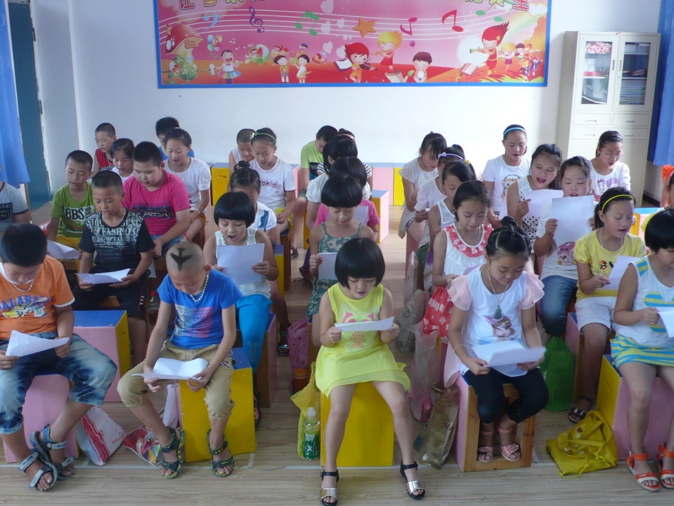 孩子们认真地学唱《红领巾相约中国梦》(摄影:窦晓昕)