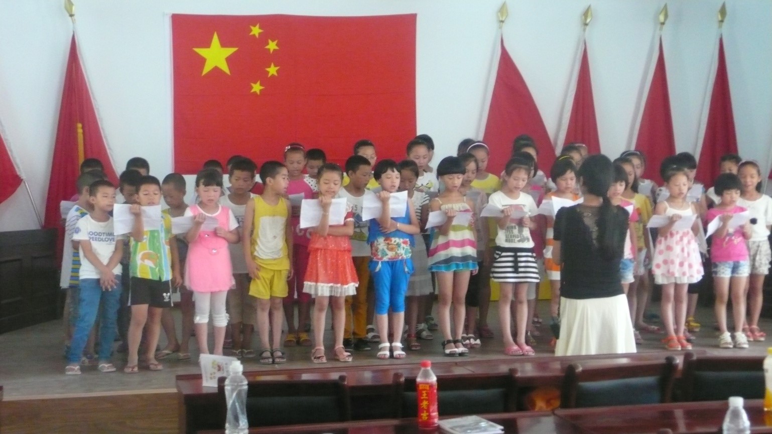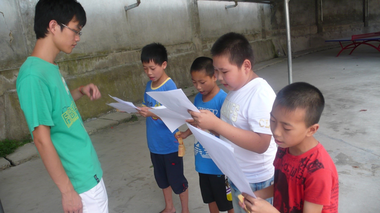 在经过二十天左右的学习,孩子们跟着辅导员老师,学到了许多课外知识,培养了语言表达能力和表演能力,本次的成果汇报演出给了他们一个绝佳的舞台,来展示自己。经过我们与学校杨老师的讨论,对汇报演出的节目及相关的人选作了细致的规划,节目单安排大致如下:集体诗歌朗诵,快板表演,朗诵比赛,支教团队四人唱歌表演,以及最后的集体大合唱。由于时间紧迫,原本不上课的下午也用来排练。每个人都是那么的热情、努力、积极地参与着:两名主持人忙着演练台词;参加朗诵比赛的同学一遍又一遍的模拟上台比赛,熟悉文章的感情;学校的音乐老师也牺牲市里演出比赛的准备时间,来帮忙指导大合唱演出;负责打快板的四名男生,更是收起了以往的调皮好动,安安静静地背着快板词,其后又在晚上单独加班排练,十分的用心刻苦,真真实实地感动了我。