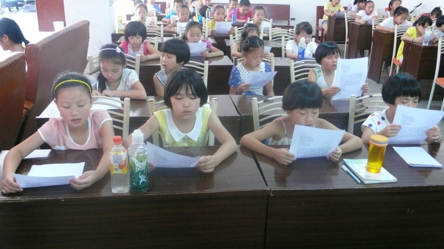 8月8日,我们为孩子们开设了农家书屋诵读经典课程,一方面让孩子们能够沉浸在书海中,自由地阅读;除此之外,还为孩子们准备了《我爱这土地》、《少年中国说》、《祖国啊,我亲爱的祖国》,这三篇经典的爱国诗歌篇目,为最后的汇报演出作好人员的预选和初步的准备工作。第一节课,我们以领读加讲解的方式,让孩子们在理解中带感情朗读,同时依据他们的表现,现场选取优秀的同学参加《我的中国梦》朗诵比赛,届时相信他们将会用朗诵抒发出内心对梦想、对祖国的感情,带来更精彩的表演。