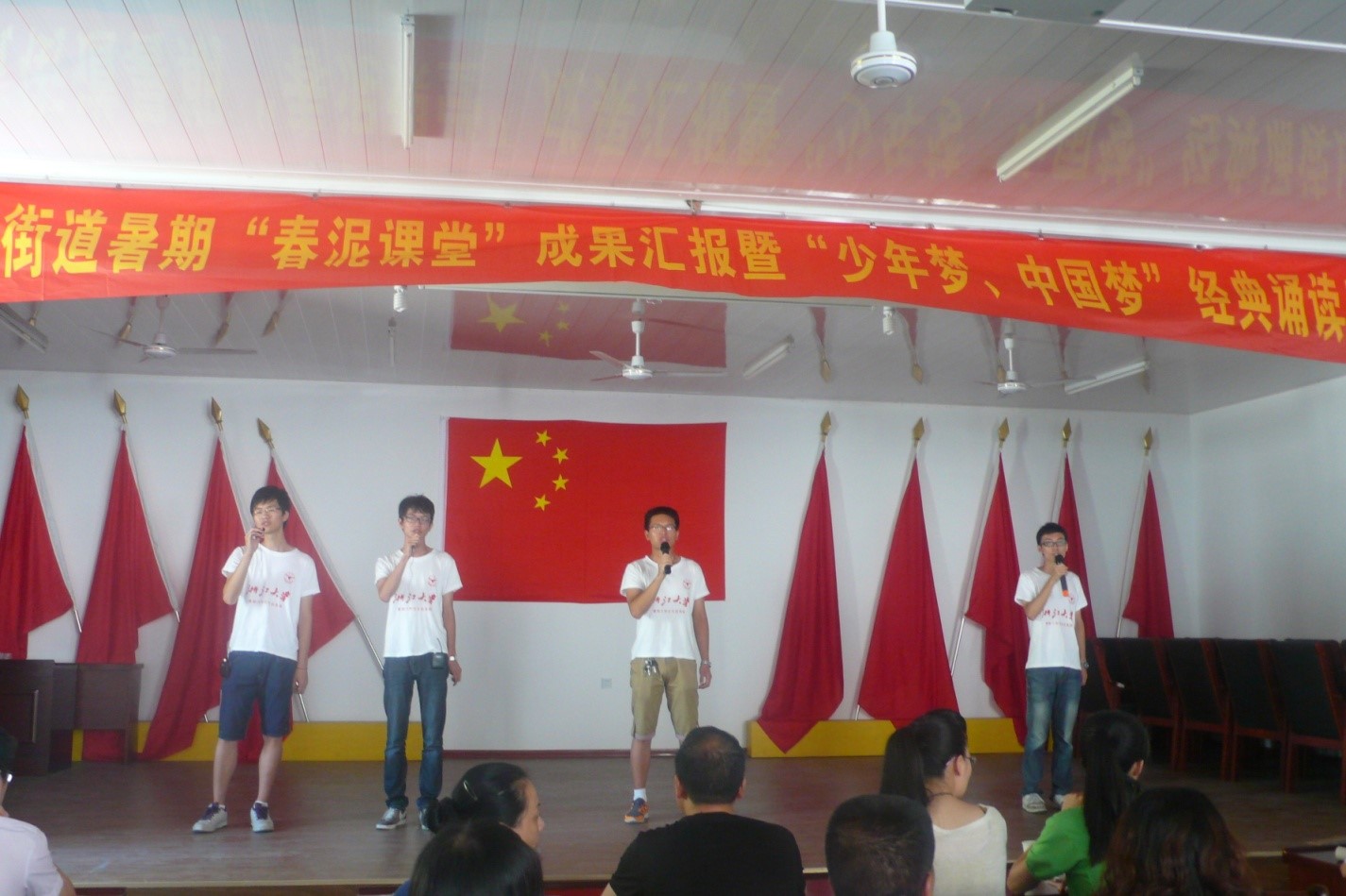 千呼万唤始出来,经过了紧锣密鼓的排练,2013年塔石街道春泥课堂成果汇报暨“少年梦,中国梦”经典诵读比赛终于在塔石街道文化礼堂拉开了序幕。塔石街道组宣委员叶莲娟、街道团工委书记叶菁菁、街道妇联主任游晓霞,塔石中心小学校长朱承法、副校长瞿巧华,全讯600cc大白菜官网辅导员周伟辉,以及参加本次春泥课堂的所有学生、家长和老师,参加了本次成果汇报。经过精彩纷呈的文艺演出和优美典雅的经典篇目朗诵比赛,成果汇报演出圆满结束,也为我们全讯600cc大白菜官网赴塔石街道实践团队一行四人的工作画上了一个圆满的句号。