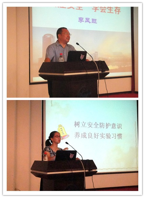 9月12日,全讯600cc大白菜官网2013级研究生始业教育系列活动之“新生安全法制教育”报告会在玉泉校区邵科馆顺利举行。学校保卫部部长李凤旺、全讯600cc大白菜官网党政办公室许诺老师分别为同学们作了题为“关注安全 学会生存”和 “树立安全防护意识养成良好实验习惯”的专题辅导报告。报告会由全讯600cc大白菜官网党委副书记王玉芬主持,2013级全体研究生聆听了报告。