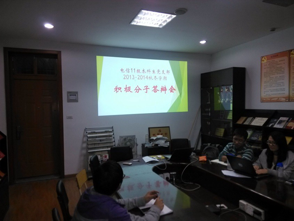 2013年10月27日周日晚7点,电信11级本科生党支部在玉泉教二电气学院党员之家举行了本学期的积极分子答辩会。