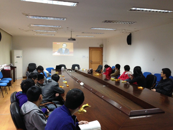 11月13日,冷锋过境后的杭州天朗气清,电力经济12硕十余位成员齐聚电机楼201。首先,团支书介绍了此次活动的大背景,即一是十八届三中全会召开,将定下未来多年中国发展的基调,把握发展趋势,对大家未来的生涯规划非常重要;二则是要结合“基层团组织建设月”,开展系列活动加强基层团组织文化建设。