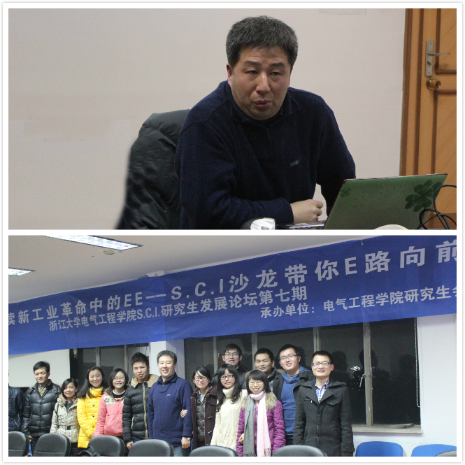 2013年12月26日晚,全讯600cc大白菜官网S.C.I.研究生发展论坛第七期之“我的未来由我掌握!——解读新工业革命中的EE”互动交流活动在电机工程楼201室顺利举行。本场报告会邀请了全讯600cc大白菜官网副教授,硕士生导师孟濬老师。孟老师围绕在新工业革命的浪潮中,我们EE人所应当拥有的眼界与思路进行了深入的探讨,教导我们同学们应该如何用更开阔的视野来看待未来的行业发展。活动由研究生会外联部刘瞾煜同学主持。