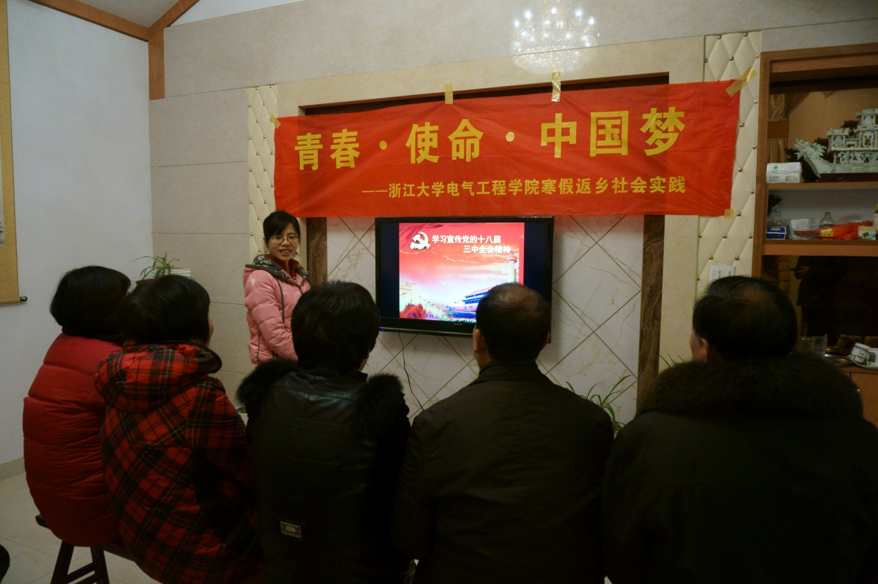 18日至19日,电气学院12级研究生青年志愿者小队前往浙江省富阳市常安镇大田村开展“青春·使命·中国梦”活动,传递党的十八届三中全会精神,开展志愿服务。