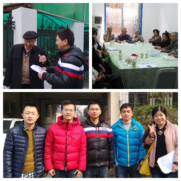 活动当天,恰逢孝闻社区老年活动,团队成员就十八届三中全会中关于社会保障制度及城乡发展问题进行了询问,并进行了相关宣传资料的分发。有些老人由于只领取最低社会保障养老金,纷纷表示物价今非昔比,只有省吃俭用才能勉强度日,大部分仍然依靠子女的赡养。同时,对于宁波的发展,老人们纷纷开始回忆起没有天一广场(宁波著名的商业广场)的鼓楼街道,也都非常期待地铁的开通,“宁波的未来是年轻人的!”老人们希望政府能够予以他们更多的关怀,也希望我们可以成为奋斗的一代!