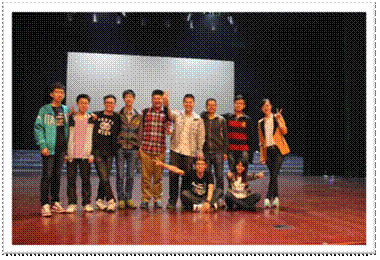 为筹备这次比赛,从四月初开始,学院团委的老师、同学就与电信1003团支部的支委们进行了交流与讨论,初步确定了风采展示的节目——舞台情景剧,并通过对不同方案的讨论,确定了利用倒叙的手法展示一个毕业多年、事业有成的原电信1003团支部宣传委员回忆团支部举办过的各种活动的情景,并在节目最后加以配乐朗诵。
