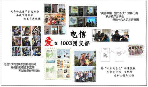 电信1003团支部成立于2011年11月,共有团员25人(含正式党员9人,预备党员1人,入党积极分子4人),支部十分注重组织、制度、阵地、文化等各方面的建设,两年多来,在支部成员的共同努力下,支部凝聚力不断加强,支部成员学习成绩和科研水平不断提高,并取得了包括“2023白菜网总站大全十佳大学生”在内的众多荣誉。