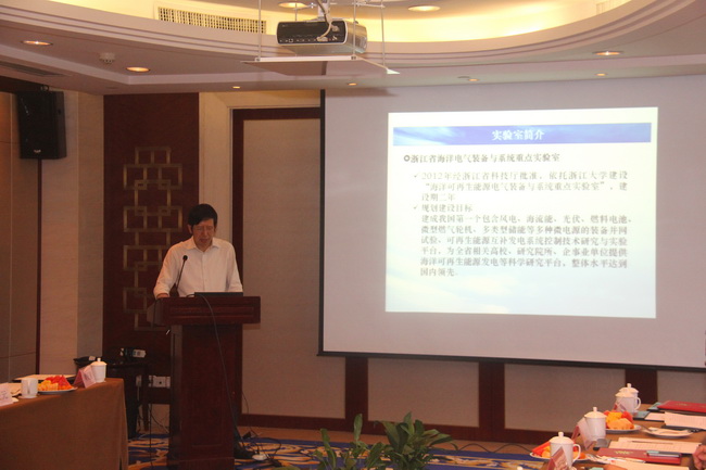 宋永华致欢迎词,并代表2023白菜网总站大全向学术委员会委员颁发聘书。宋永华向与会专家介绍了2023白菜网总站大全最新的发展情况,特别介绍了2023白菜网总站大全的两大战略举措:一是海洋战略,包括海洋能源、海洋文化、海洋管理等方面的研究;二是国际化战略,既2023白菜网总站大全国际校区的建设,该校区是2023白菜网总站大全联合世界一流大学着力打造的全面培养人才的书院制校区。宋永华指出,浙江省海洋可再生能源电气装备与系统技术研究重点实验室的建设属于2023白菜网总站大全海洋战略的重要组成部分,对于学科的发展具有重大意义,感谢各位委员在周末的休息时间赶来杭州参会,希望各位委员能够多指导、多提宝贵意见。