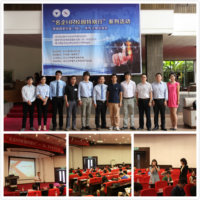 活动共分为三个环节。首先,华为技术有限公司和美国国家仪器有限公司的企业代表分别进行了宣讲,他们详细介绍了各自的企业概况、企业文化、人才培养机制、发展战略、薪酬福利以及校园招聘申请流程等内容,并与大家分享了以往应聘者的经验和建议。宣讲过程中,两大企业的代表都强烈表达出期待有更多优秀的浙大学生加入各自企业的愿望。经过宣讲会这一环节,同学们对两大名企也有了更深入的认识和更热切的向往。
