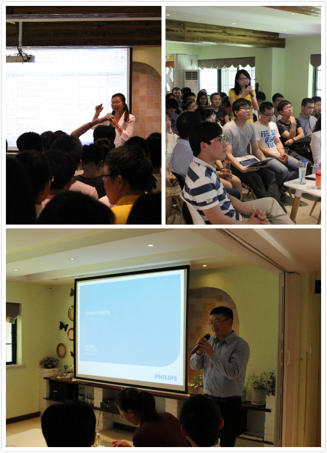 活动的第一个环节是企业宣讲。在此环节中,飞利浦(中国)投资有限公司高级研发经理段云飞先生首先就飞利浦公司本身及飞利浦照明做了相关介绍,使同学们产生一个初步的了解。紧接着是项目技术经理Evan Chen的经验分享,Evan Chen是浙大校友,已在飞利浦工作了整整七年。他的分享更多的注重于加入飞利浦后飞利浦给他的家庭生活带来的影响,以此说明公司对员工个人价值和生活的关注,只是一个简单的小故事,却让在场的师生都为之动容,也随之引出我们对企业文化和个人价值的思考。接着,公司的助理人力资源经理徐鹏远女士、研发经理王静州先生和高级研发经理段云飞先生又就同学们最关心的实习岗位做了介绍。