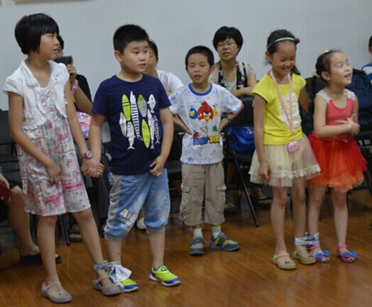 在做完几个类似的体力运动的小游戏之后,我们开始带着小朋友们做一些锻炼脑力的小游戏。比如你来比划我来猜,小朋友们两个一组背对着大屏幕坐下,家长描述屏幕上的词语,看在规定的时间内哪组小朋友猜对的词多。家长们很积极地参与到了亲子活动中,小朋友们也聪明,与家长们的配合很默契,猜对了大部分我们准备的词汇,甚至一些比较难猜的成语。