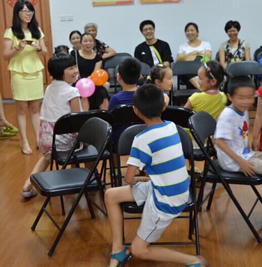 小朋友们相互熟悉之后,我们进行了下一个游戏——抢椅子。伴随着现场的音乐,小朋友们绕着围成一圈的椅子慢跑,音乐停止,小朋友们就要找椅子坐下,没有椅子的小朋友就出局了。这个游戏很好的锻炼了小朋友们的反应能力,小朋友们也积极地参与其中。活动室里传出来真真欢笑声、加油声、欢呼声,洋溢着欢乐祥和的氛围。