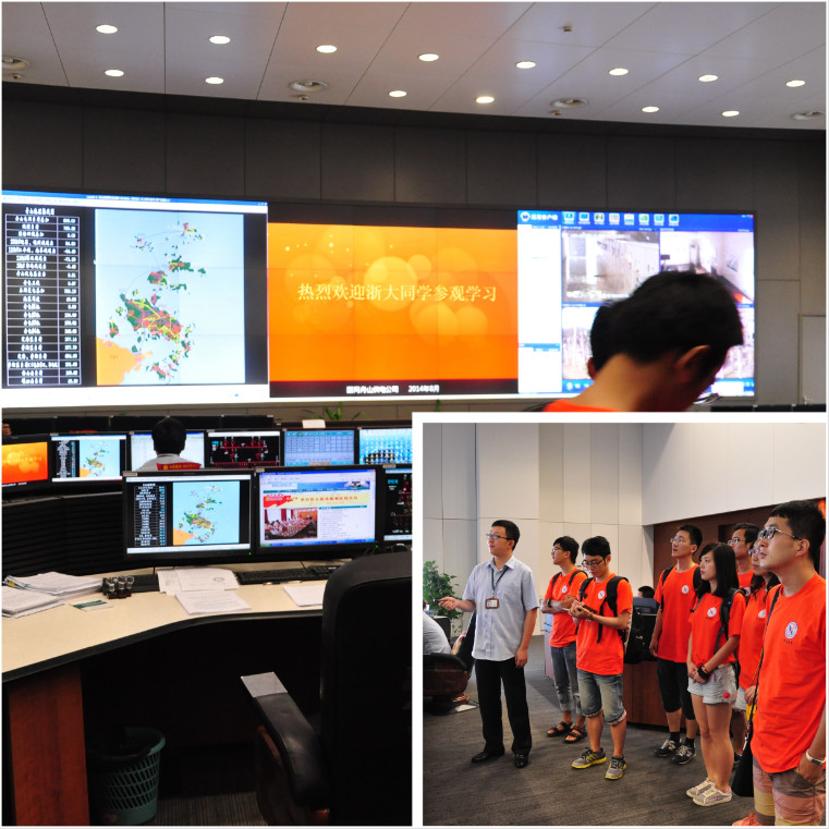 8月7日实践团来到电力调度控制中心,首先听取了调度部门负责人关于舟山群岛电力发展历史脉络与调控中心概况介绍的汇报。舟山群岛电力经历了从无到有,从单一输电线路到多电压等级网络输电线路,再到国际领先的五端柔性直流输电工程的建设,体现了舟山电力工业蓬勃发展的势头。经济发展,电力先行,舟山电力局正在努力为舟山海洋经济发展以及舟山国家级新区建设提供稳定充裕的电力保障。