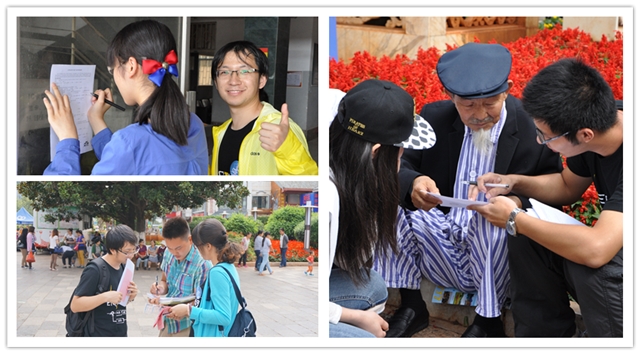 对于8号这天我们在昆明市市中心的活动,昆明市教育电视台对此作了全程报道。媒体的报道对于我们是一个极大的鼓舞,让我们有更高的热情积极投入,同时也希望更多的人受到感染。