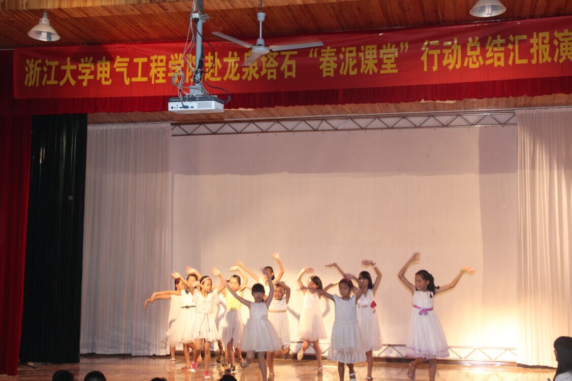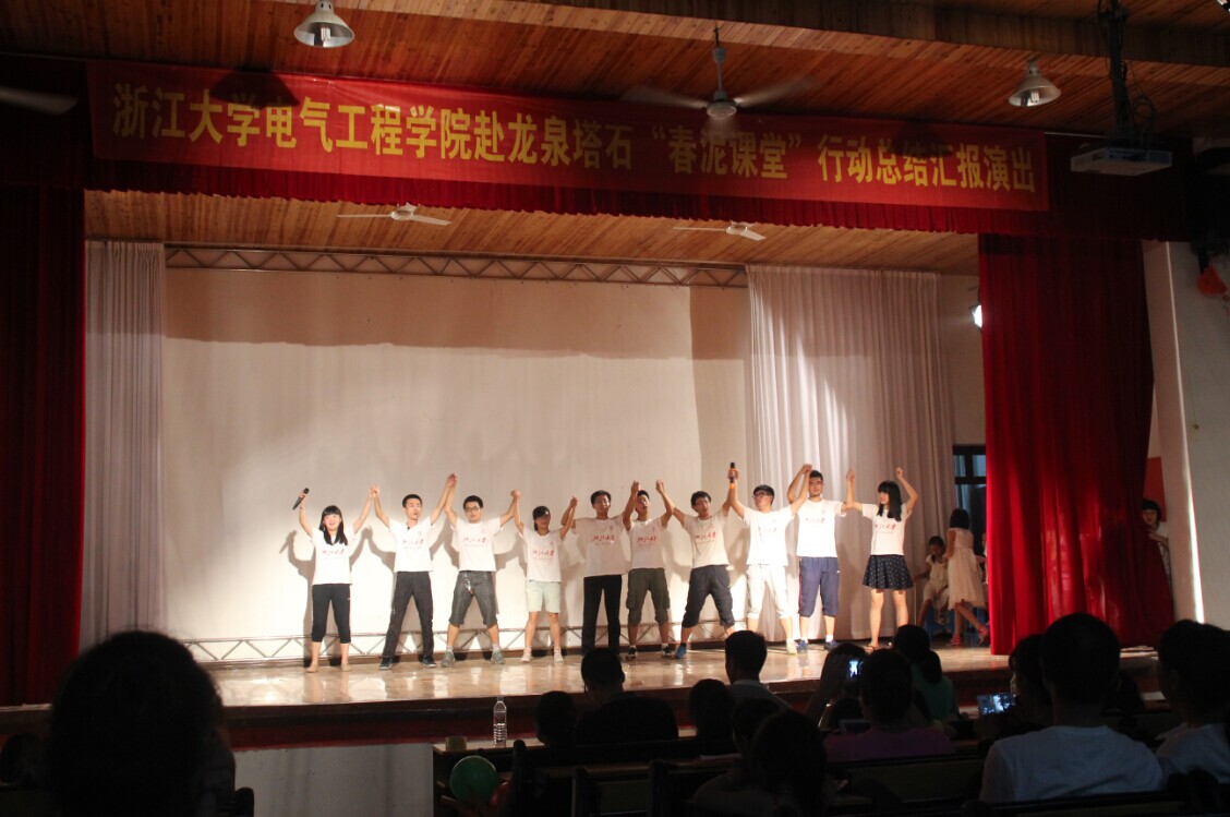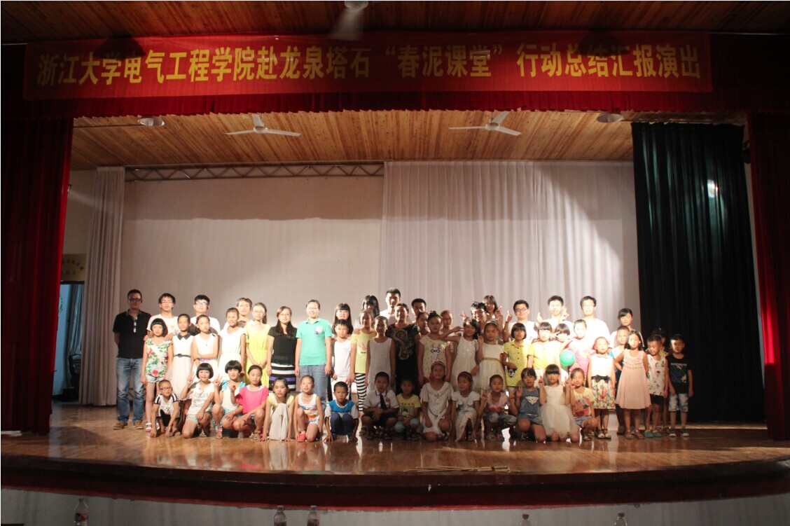 一转眼为期20天的暑期社会实践即将结束,为充分展示本次社会实践成果,在实践团12名队员与“春泥课堂”52名孩子的精心准备下,8月18日晚上在塔石街道上坞村文化礼堂上演了一场用欢笑和泪水筑成的文艺汇演,精彩的演出为本次“春泥课堂”画上了圆满的句号。龙泉市塔石街道徐菊霞委员、电气学院团委书记陈敏老师、副书记李涛老师和学生家长们应邀观看了本次文艺汇演。