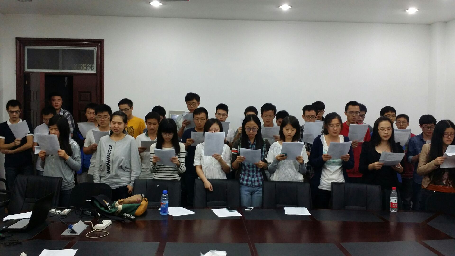 10月10日晚六点,电气自动化所、系统所2014级硕士生班的30余名同学们聚集在电机工程楼102会议室,为即将到来的研究生新生合唱比赛进行第一次排练。