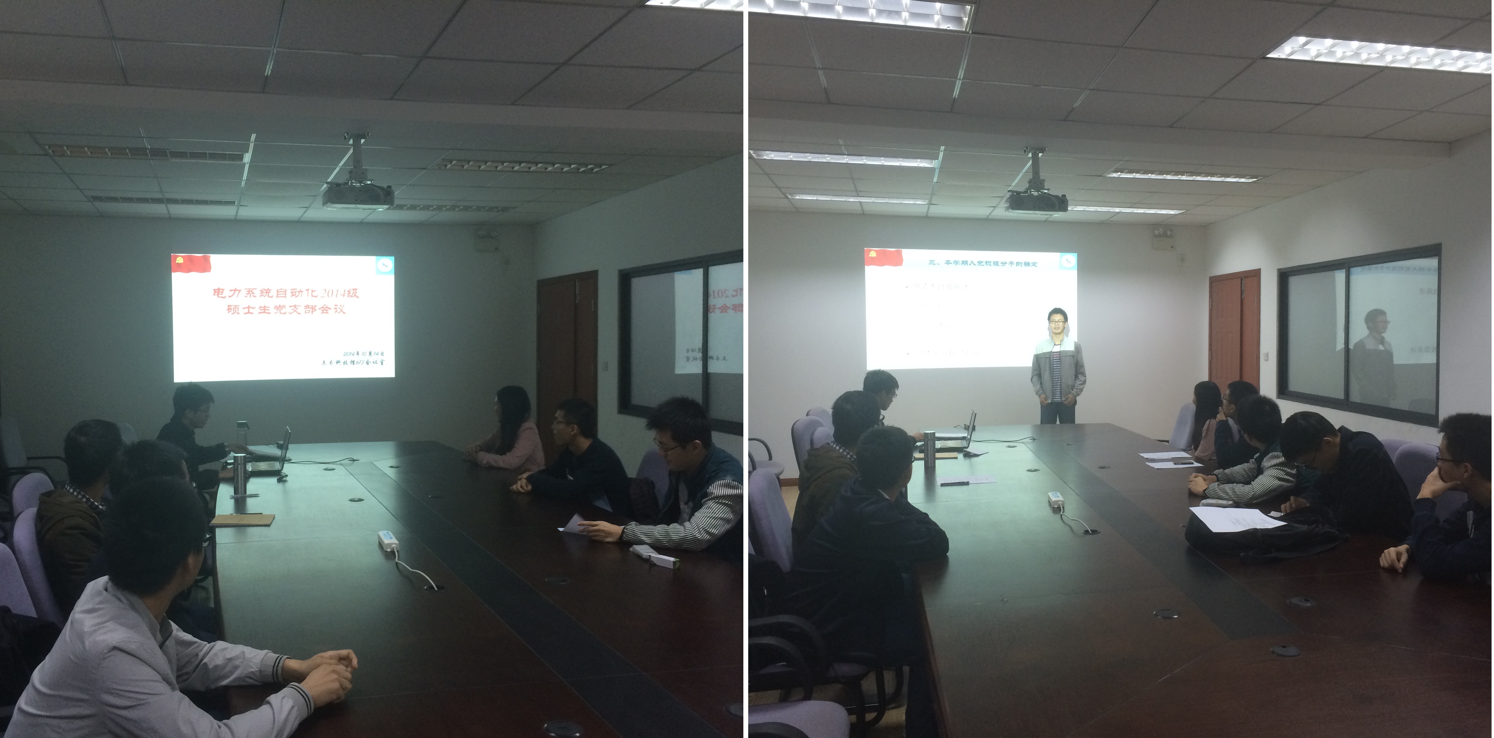 2014年10月14日晚9点,电力系统所的2014级硕士班在土木科技馆613室举行了支部成立以来的第一次党支部会议。本次会议的主要内容主要围绕党支部工作要求、发展党员工作流程培训、入党积极分子的确定、老和山环保活动的开展等方面进行。会议由党支部书记肖亮同学主持。