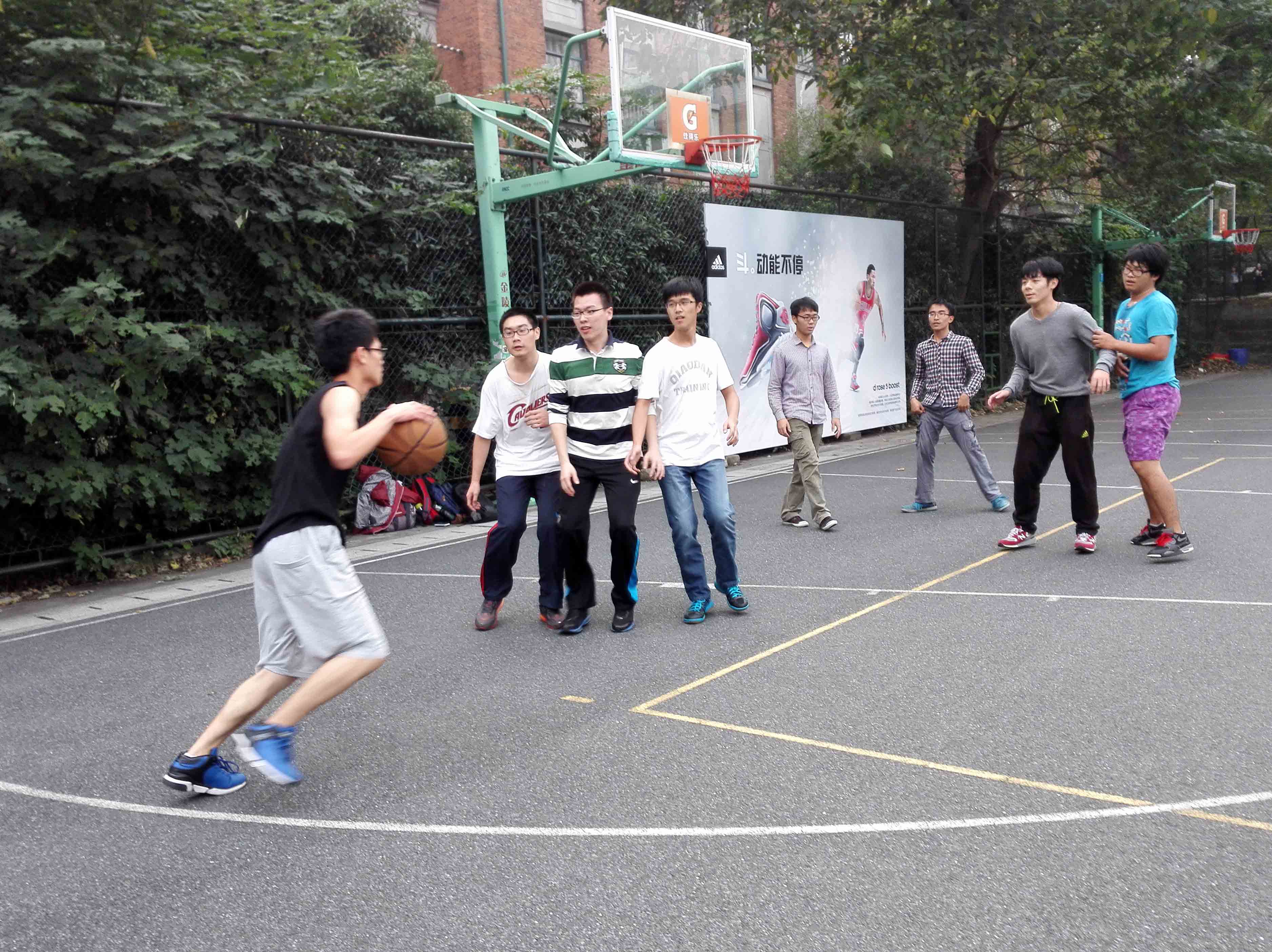 稍作休整后,同学们在班长的带领下到篮球场上集合并分组。球场上男生们抢球运球,球场外女生呐喊加油,气氛十分紧张刺激。这场球赛的目的一是为了锻炼同学们的体魄,培养良好的身体素质,二是希望通过此坚定大家的信心,把整个班级团结在一起。整个团日活动在球赛决出胜负的同时走向了尾声。