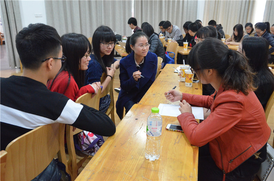 接下来,黄俏俏女士针对简历制作与面试培训,提到了很多做简历和面试过程中的需要注意的细节,并当众点评了两份简历。同时让大家提问,黄女士认真、详细、耐心地给出了解答,使在场的同学受益匪浅。