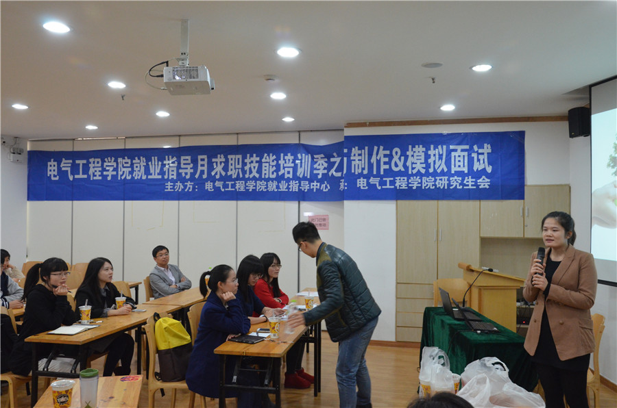 在竞争激烈的求职季,有一份满意的简历和精彩的面试表现对觅得一份满意的工作尤为重要。为此,2014年11月12日,在永谦活动中心,全讯600cc大白菜官网研究生会携手浙江艾罗电源有限公司,为大家进行了一场别开生面的面试技巧培训讲座,为大家解决求职面试过程中简历制作与面试技巧的问题。出席此次活动的培训嘉宾是浙江艾罗电源有限公司总经理兼研发总监欧余斯和人事经理黄俏俏,学院陈敏老师亦出席了本次活动。