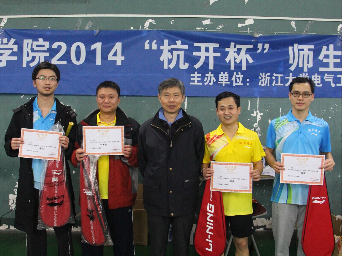 比赛是残酷的,很快今天的战况落定——由辛焕海老师和张晟同学组成的队伍在决赛中战胜干于老师和肖晃庆同学,获得本次“杭开杯”师生羽毛球赛的冠军,全场都为他们送去了热烈的掌声。