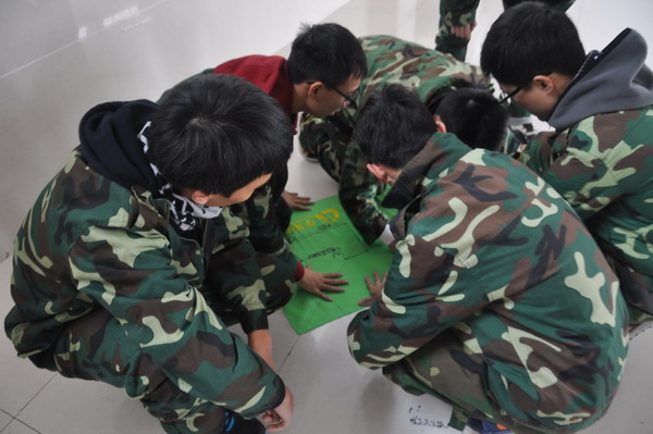 孤岛求生项目中,所有同学被分为3组,分别登上珍珠岛,盲人岛和哑人岛。三岛同学彼此隔离,既有各自的任务,又用贯通三岛的最终目标。爱班成员的聪明才智再次得到印证。尽管教练说,这个项目很少有团队可以完成,我们还是在短短的17分钟内完成了所有任务,成功将所有人送上“美丽富饶”的珍珠岛。