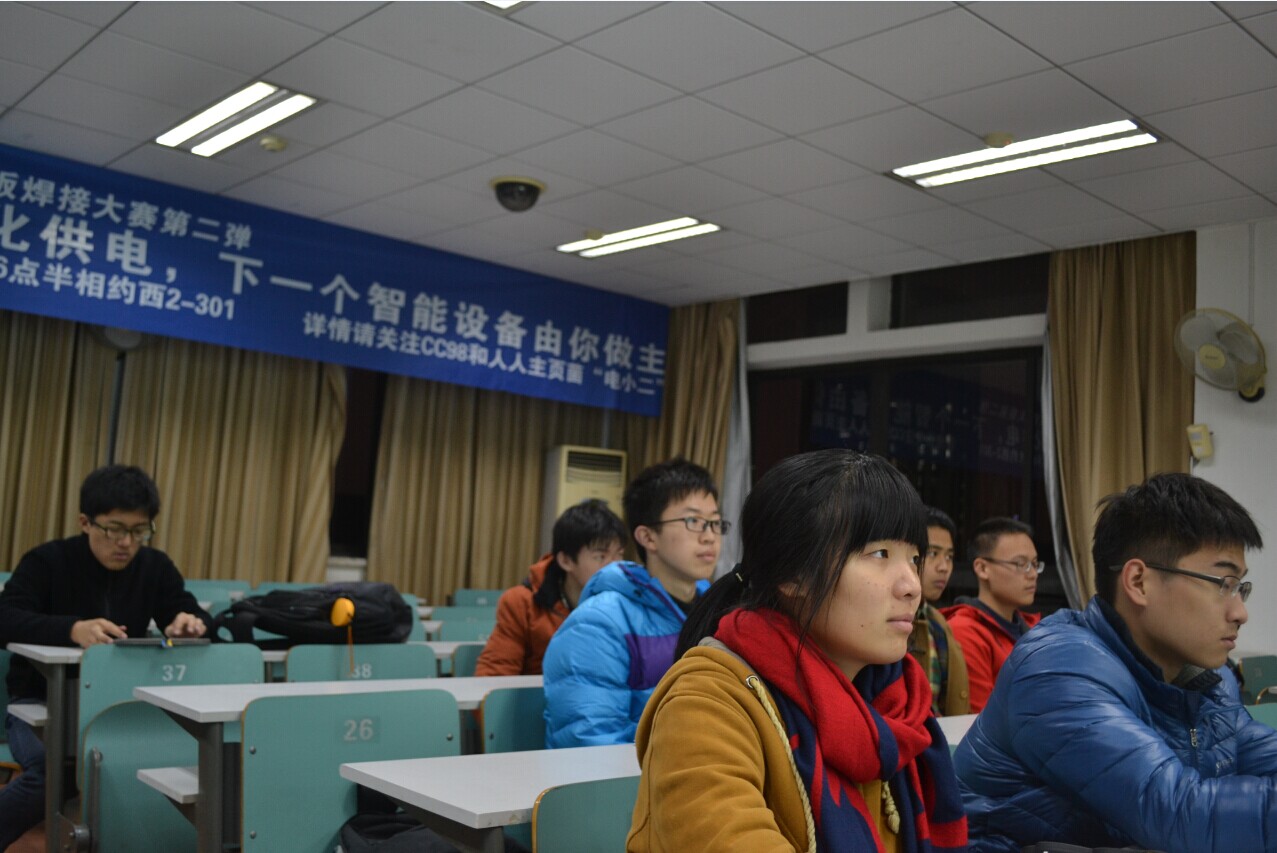 作为即将到来的电路板焊接大赛前的预热活动,两次讲座的主题都紧紧围绕电气,意在向广大电气、非电气学子普及电气方面的相关知识;同时也为他们提供一个与大牛学长面对面交流的机会。寒风凛冽,却阻挡不了同学们来听讲座的步伐;寒气袭人,却阻止不了现场热烈的气氛。参与讲座的同学认真听讲,对主讲人的分享产生了浓厚的兴趣;在互动环节,还跟学长聊起了有关电气的各种有趣话题。