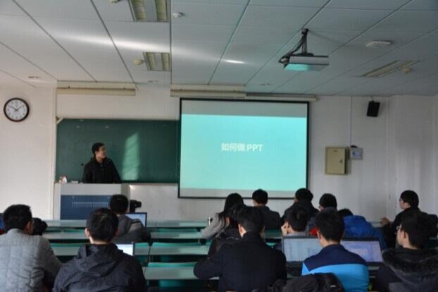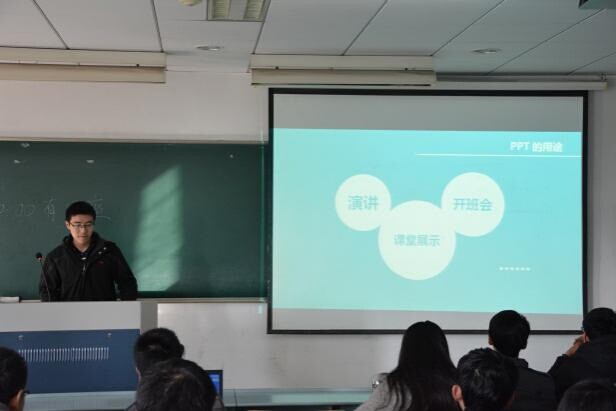 培训的最后,沈正坤同学针对性地向我们介绍了几种不同类型的PPT以及它们所适用的场合。关于PPT中的动画,他还通过自身的经历告诉我们:如果演讲者使用动画来辅助其讲解,那么演讲者的语速一定要和动画的放映速度相匹配,否则会转移听众的注意力,事倍功半。培训后的互动环节,同学们向沈正坤同学提出了自己关于PPT制作甚至表现方面的问题,沈正坤同学都一一做出了细致解答。