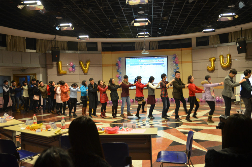 舞会环节,工作人员带领着大家在舞会现场连成了一圈,随着轻松的节拍跳起了兔子舞。同学们在炫目的灯光和欢快的音乐中纷纷起身,邀请同伴参与其中。一时间,剧场内笑语欢歌、情意交融,晚会的气氛达到顶峰。曲终之时,晚会也落下帷幕。