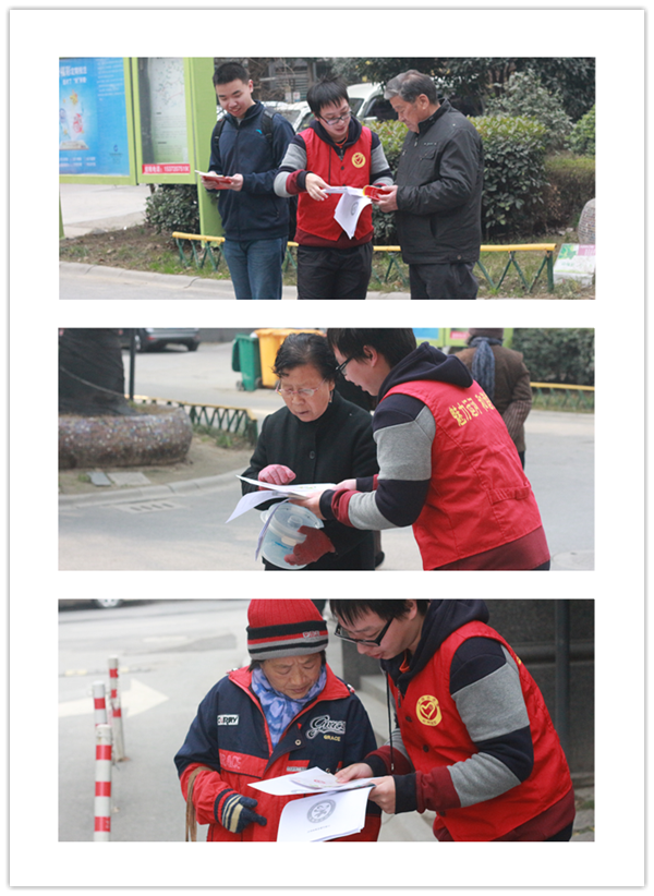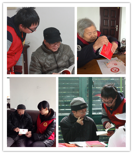 本次志愿活动分为三部分:慰问孤寡老人、社区卫生服务、中国志愿服务标识推广与普法宣传。其中,中国志愿服务标识推广与普法宣传是本次活动的重点内容,并贯穿在孤寡老人访问的活动中。2014年12月27日清晨,乘坐1个多小时的公车,全讯600cc大白菜官网的青年志愿者们到达了拱墅区北星社区。根据前一日动员会的安排,志愿者们分为三组,分别前往各自的服务地点并开展志愿服务工作。