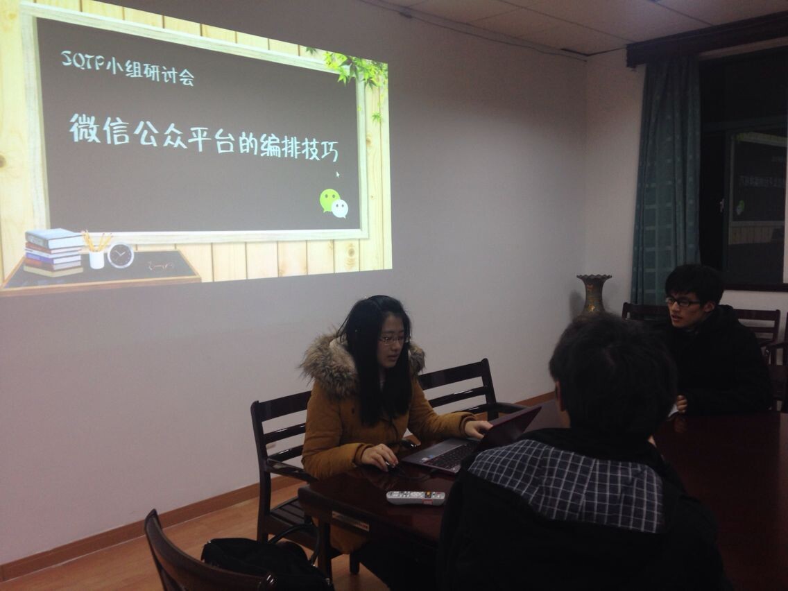 为了进一步提高微信公众平台的编排质量,优化平台的用户界面,18日晚9:00,电气学院“大学生新媒体团队建设与技能素质提升”SQTP小组在教二405开展了关于微信公众平台内容编排技巧的组内研讨会。小组成员一一讲述了自己在内容编排上遇到的问题和积累的相关经验。通过网络资料的搜集以及组内成员的探讨交流,大家不仅拓宽了思路,也学习到了很多关于微信公众平台内容编排的相关技巧。