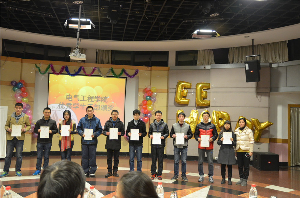 大会第一阶段,学院对第七届十佳学子和2014年度校级、院级优秀学生干部进行了表彰。他们或是学术上的大牛,或是在学生工作中付出了宝贵的时间和精力,或是体育赛场上那颗耀眼的旗帜。岁月不居,天道酬勤,他们用不同的方式,为电气学院的荣誉墙添上属于自己的一笔。紧接着王瑞飞老师对本次活动进行致辞,他对获得表彰的同学进行了肯定,指出在过去的一年里,电气人齐心协力、锐意进取,以辛勤的工作,换来了丰硕的成果,希望大家继续努力、开拓进取。