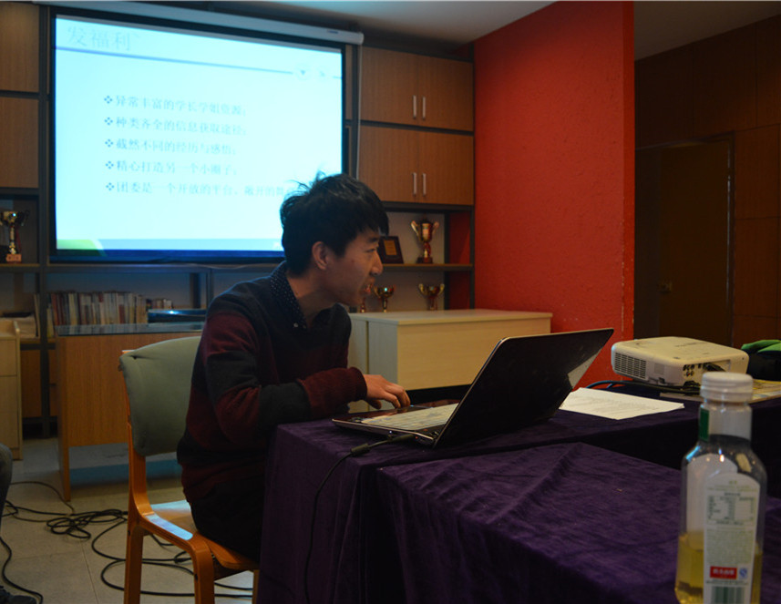 部门介绍结束后,李济沅同学从自己加入团委的亲身经历出发,动员大家积极参与到团学工作中来,他讲到加入团委不仅可以提高沟通和组织协调能力,也可以扩大交往圈,收获不一样的精彩。随后,周梦琪同学结合自己在蓝田分团委的经历,讲到了团委人的“气质”,她说,团委不同于其他学生组织,正是团委人默默无闻和勤劳踏实的“气质”吸引她一直走在这条为同学服务的道路上。