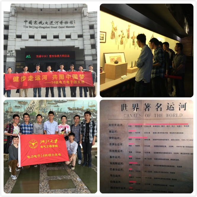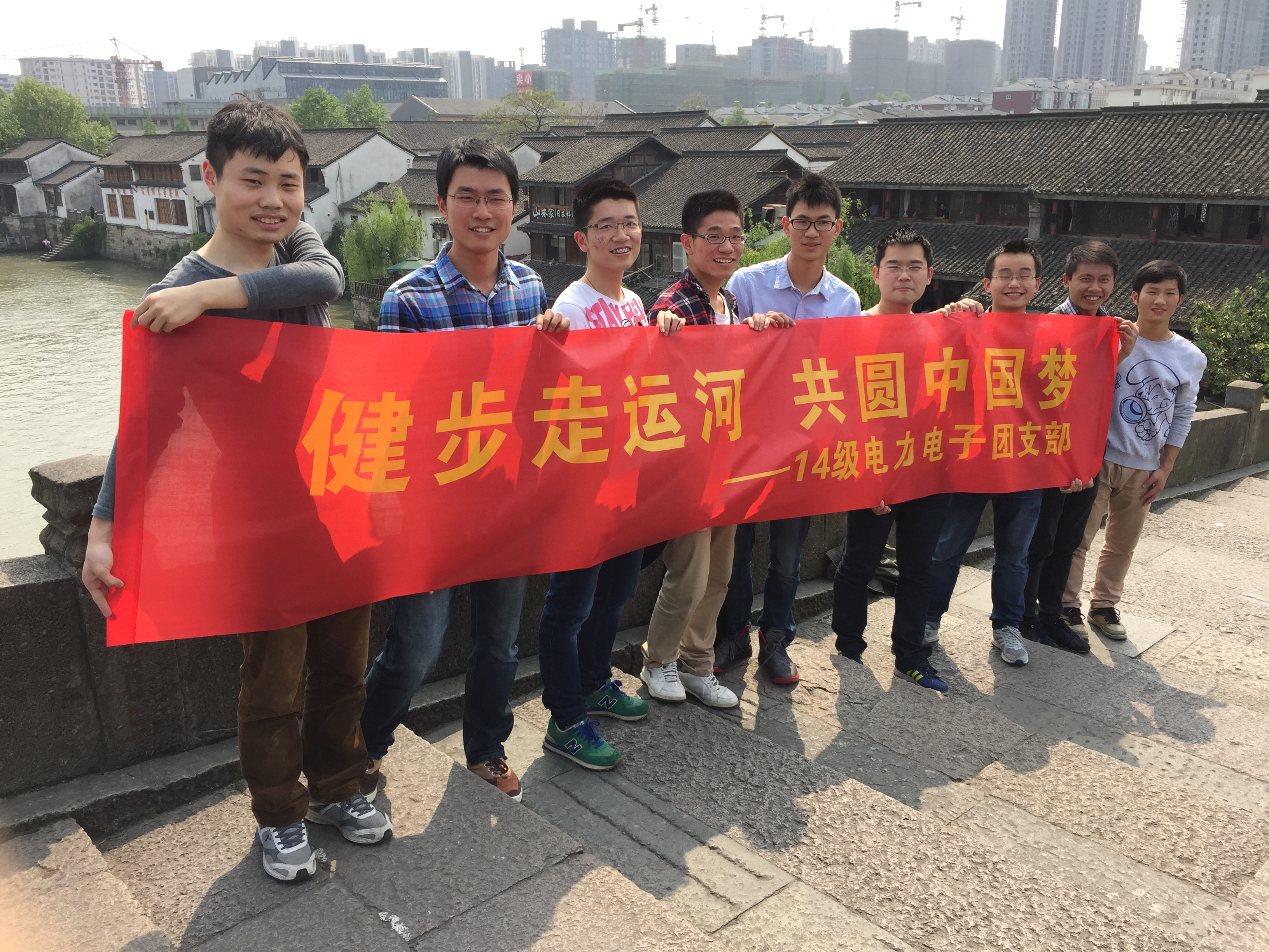 2015 418日,为了让班级团员在忙碌科研生活能在身心上得到放松,从身边的文化遗迹中去提取传统文化的闪光点和精华,结合了大运河文化在杭州历史文化中的影响作用以及活动实践的可行性,由电力电子14级硕士生团支部组织开展的以“青春勇担当,共筑中国梦”为主题的主题团日活动在京杭大运河沿岸正式开展。
