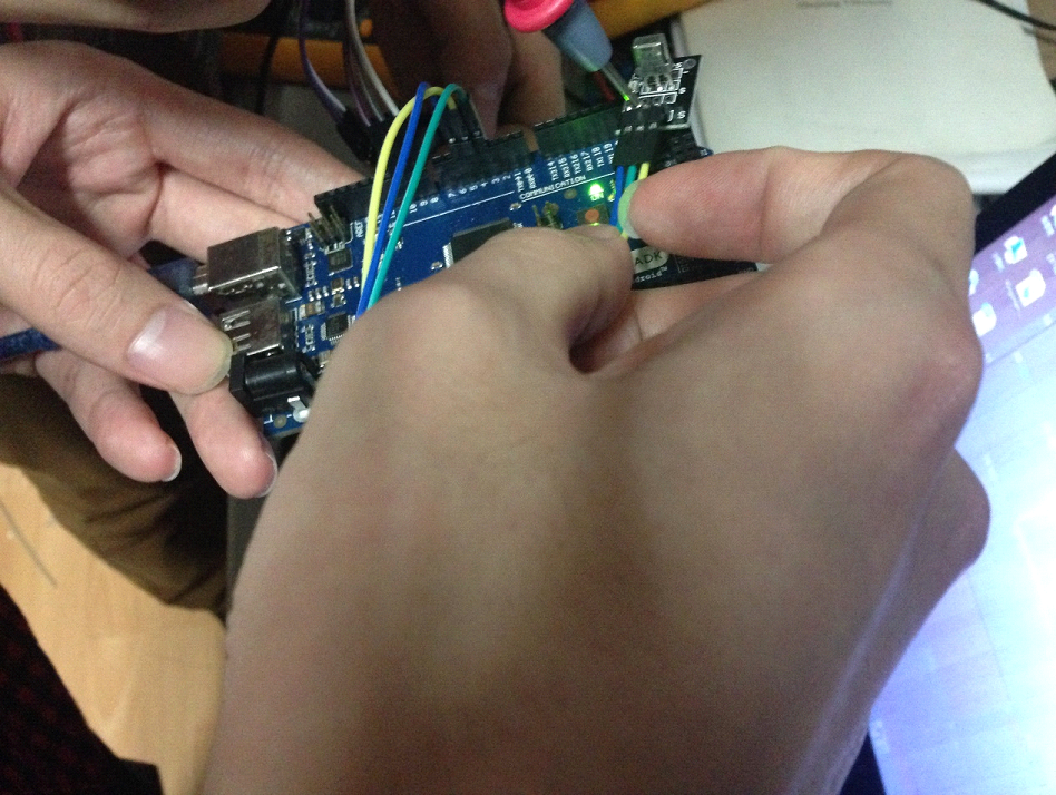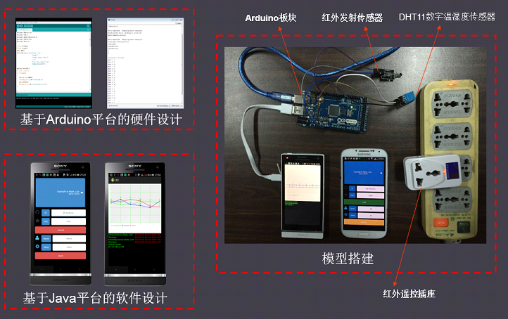 下来的周末中,本支部同学进行了“微话题”的后续实践。依据之前的线上讨论结果,购买廉价Arduino开发板元件,利用现有实验室测量设备、材料,各实验室团员共同搭建试验平台,模拟一个能利用闲置智能手机、平板的智能家居场合。手机内用java开发android APP,手机外改造硬件用Arduino开发元件。平台搭建过程中得到学院本科蹇强、张思亮、蒯琴等同学的热心协助。大家在学学玩玩编程,动手动脑,多有收获。