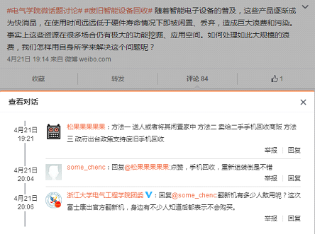 对这种现象的观察与反思,超大所博士团支部同学响应学院号召,组织了一次“微话题”活动。在4月21日晚,支部同学们先在电气学院团委的微博上进行了线上讨论:首先基于各自的知识储备和专业侧重,对于现有智能设备硬件产能过剩的现状讨论,比如智能电子设备生产量、出货量、硬件生命周期、使用周期、换代速度等等,以期能清晰具体知道浪费现状。然后根据各自学习、生活经验,讨论一下所了解身边智能设备回收、闲置状况,比如大家闲置淘汰的手机是不是运行还大体良好;比如智能电子设备现有的粉碎、掩埋的粗暴回收方式造成的环境污染破坏 。最后各抒己见,讨论具体挖掘闲置的“过季”手机、平板的功能再利用的方法,比如与如今火热的物联网结合,利用闲置智能电子设备强大的处理器运算功能、wifi蓝牙无线传输模块和丰富的传感器(如摄像头、重力感应、触摸感应),将之改造成智能家居一部分。