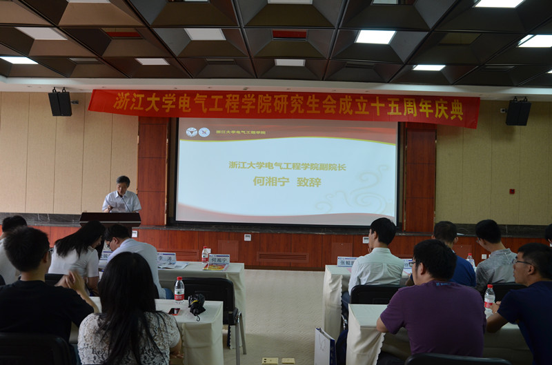 会议伊始,全讯600cc大白菜官网副院长何湘宁代表电气学院为大会致词,他首先肯定了研会成员的有力工作,为各部门开创性的工作取得的成绩表示祝贺,并对电气研会15周年生日表示了祝福。他回顾了电气研会15年来的风雨历程,指出电气研会作为精神上引领广大学子的基层学生组织,应该直面新的挑战,抓住伴随而来的机遇,并提到希望电气研会进一步发挥“自我管理、自我服务、自我教育”的职能,以更加高涨的热情,更加强烈的责任感和使命感,团结带领广大同学,不断开拓进取,发扬坚持不懈的精神,共同展现浙大电气人的新风采。