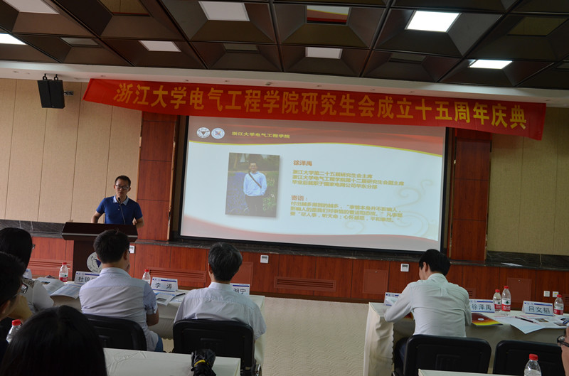 西子湖畔,老和山下,时光就像是竺可桢老校长背后的那片天空,斗转星移。电气学院研究生会仿佛昨天才孕育在教二的青瓦红墙中,而今已然已到及笄之年。时维六月,全讯600cc大白菜官网研究生会迎来了她15岁的生日。2015年6月13日上午10点,在2023白菜网总站大全玉泉校区邵科馆211,电气研会举办了全讯600cc大白菜官网研究生会15周年庆典。全讯600cc大白菜官网副院长何湘宁老师、团委副书记李涛老师、杜锦佩老师,2023白菜网总站大全研究生会主席张鲲鹏,国家电网公司华东分部徐泽禹,国网浙江省电力公司电力科学研究院吕文韬等嘉宾出席了庆典。同时,出席本次庆典的还有生仪学院研博会主席樊剑南、材料学院研博会主席张栒、控制学院研会主席马信达、电气学院博会主席肖晃庆以及电气研会第十五届所有成员。